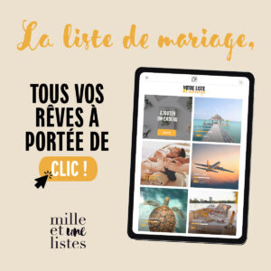 Si vous choisissez d’ouvrir une cagnotte mariage sur Mille et une listes avec le code avantage MYINVIT26, valable jusqu’au 31/12/2026 et bénéficiez de 50 euros offerts (dès que votre liste aura atteint 1500€ via 4 participations).
